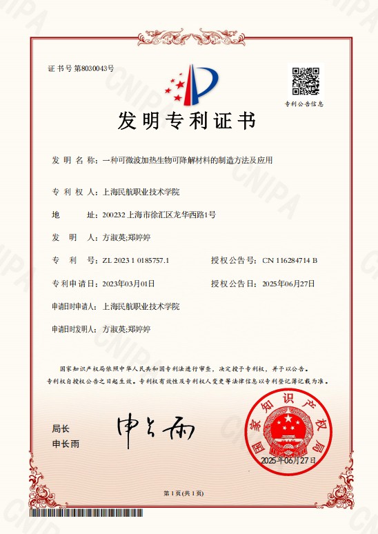 发明专利:一种可微波加热生物可降解材料的制造方法及应用