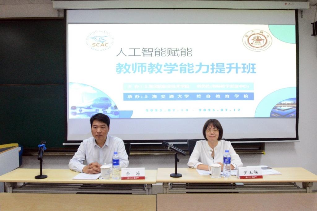 2025年7月14日上午,上海民航职业技术学院“人工智能赋能教育教学能力提升班”开班典礼在徐汇校区1号楼605教室隆重举行。学院副院长罗玉梅和上海交通大学终身教育学院干部培训创新中心副主任余海出席典礼并致辞,教务处(教师教学发展中心)副处长王元英主持。来自二级学院和各部门的教师代表参加了本次开班仪式,共同开启了为期4天的AI赋能教育探索之旅。